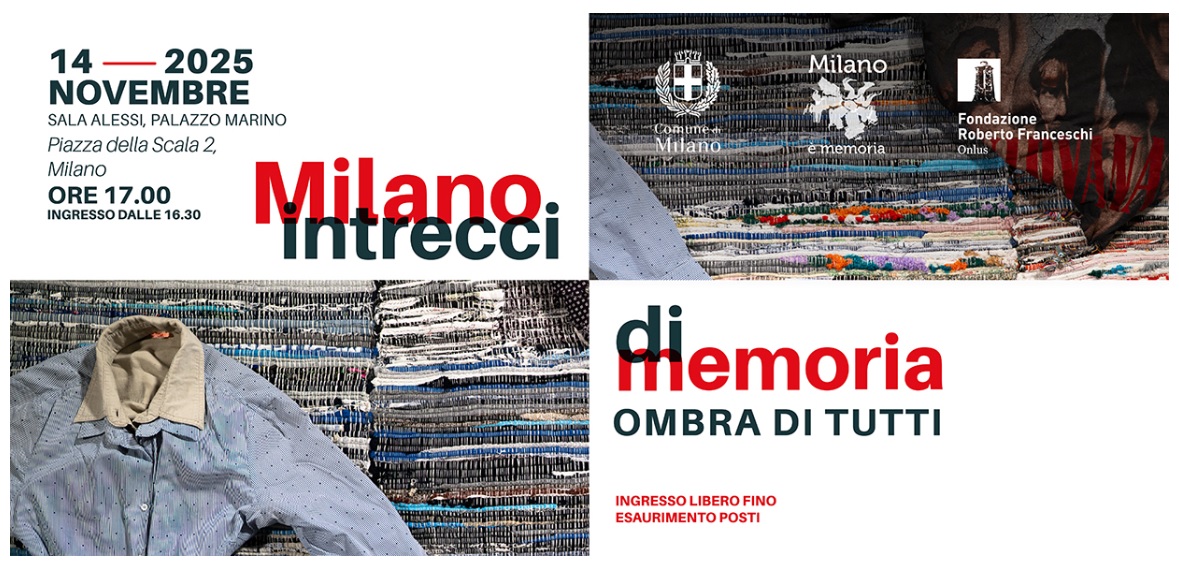 Venerdì 14 novembre 2025, a Milano, alle ore 17 (ingresso dalle 16.30), nella Sala Alessi di Palazzo Marino, si terrà l’incontro Milano intrecci di memoria. Ombra di tutti.